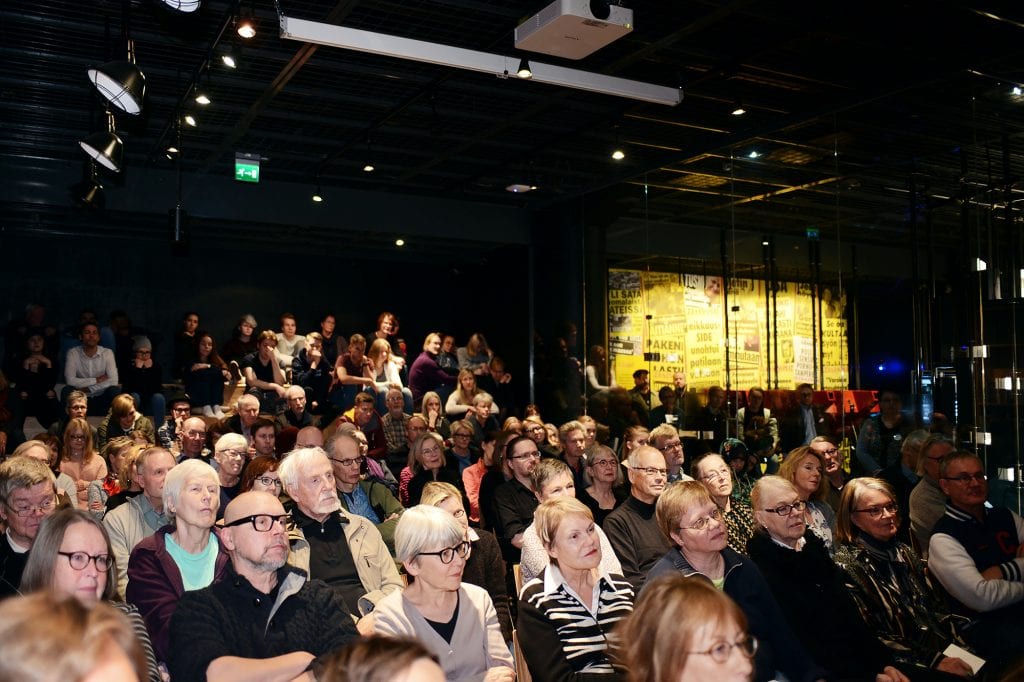 Keskusteluun osallistuivat Helsingin yliopiston tutkija Jukka Häkkinen, Helsingin Sanomien lehtikuvaaja Sami Kero, valokuvaaja Kari Kuukka ja professori Merja Salo Aalto-yliopistosta – sekä aktiivinen yleisö.