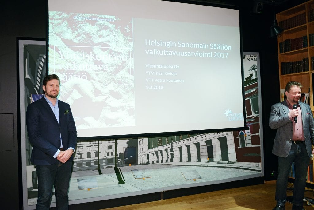 Helsingin Sanomain Säätiön tilaama vaikuttavuusarviointi on julkistettu. Vaikuttavuusarvioinnilla säätiö halusi selvittää, millä eri tavoin se vaikuttaa yhteiskuntaan ja ympäristöönsä ja miten se on tässä tehtävässään onnistunut. Tutkimuksen teki Viestintäluotsi Oy:n YTM Pasi Kivioja ja VTT Petro Poutanen.